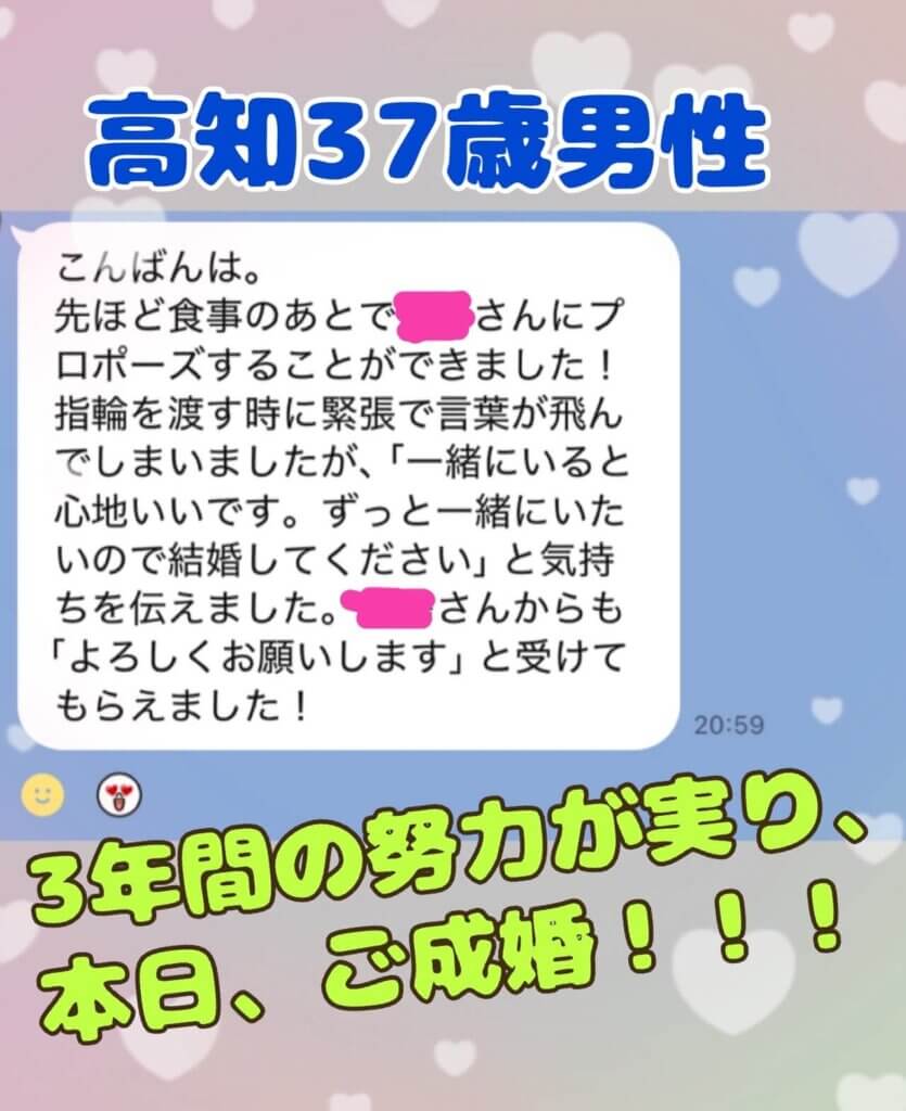 高知37歳男性。3年間の努力が実り、本日ご成婚!!!