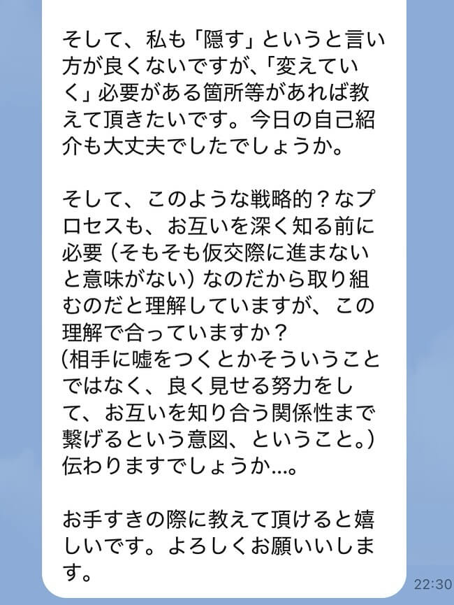 「相手に嘘をつくとかそういうことではなく、良く見せる努力をして、お互いを知り合う関係性まで繋げるという意図」