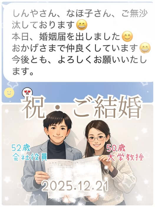 お二人が選択を誤らず仲人婚活を選んでくださり、