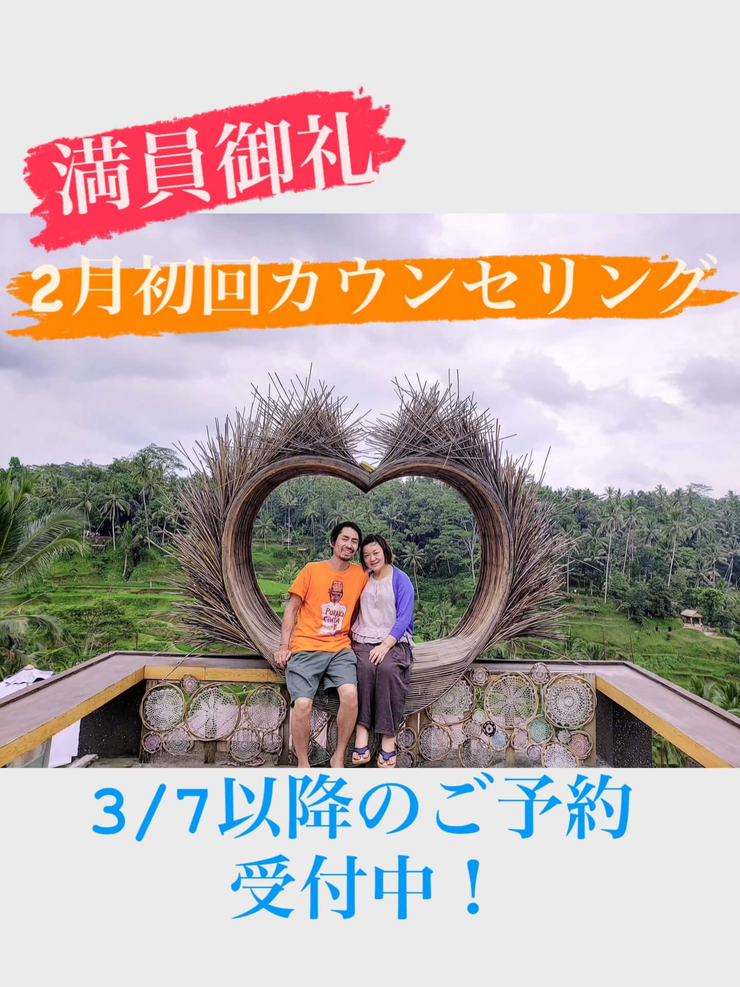 追伸:2月の初回カウンセリング、そろそろ予約枠が埋まってきています。あと1名様で締め切らせていただきます🙏