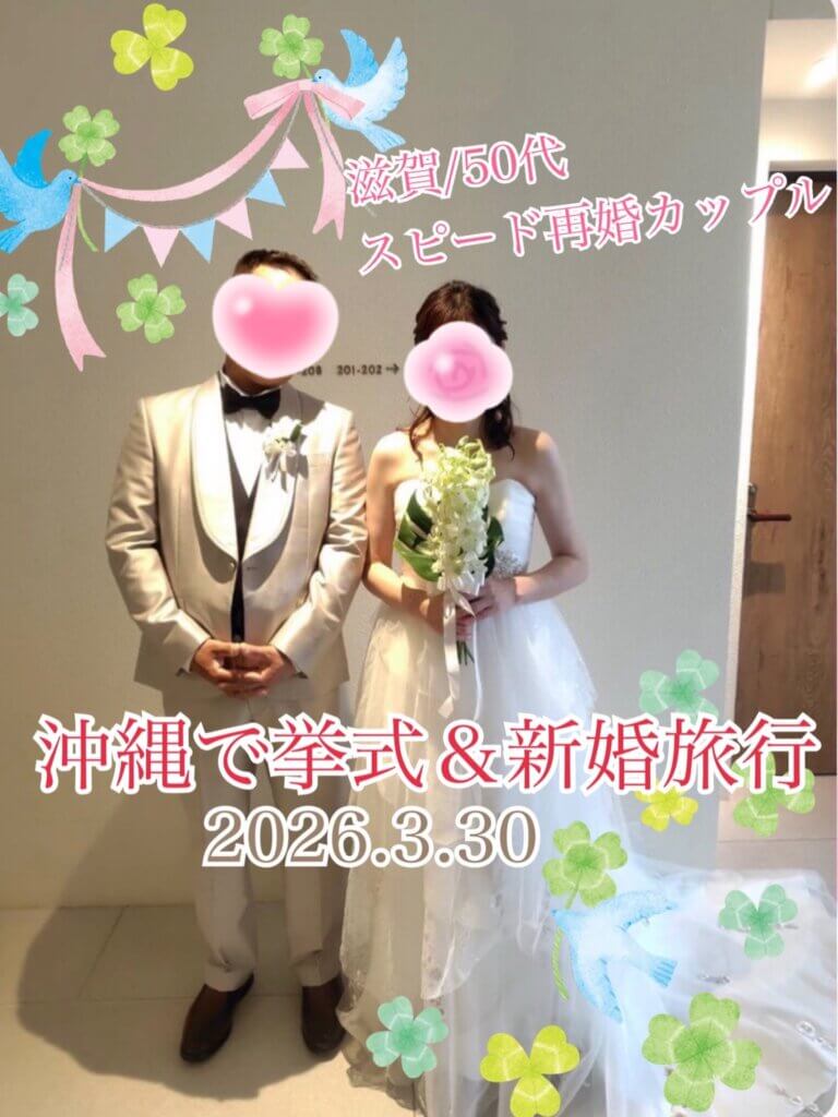 昨年11月初旬、出会って1週間でご成婚(婚約)され、出会って40日で超スピード婚を果たした滋賀県の50代カップル。 3/30に沖縄の古宇利島🏝️で新婚旅行を兼ねた最高の挙式を挙げられました💓✨ 本当におめでとうございます...