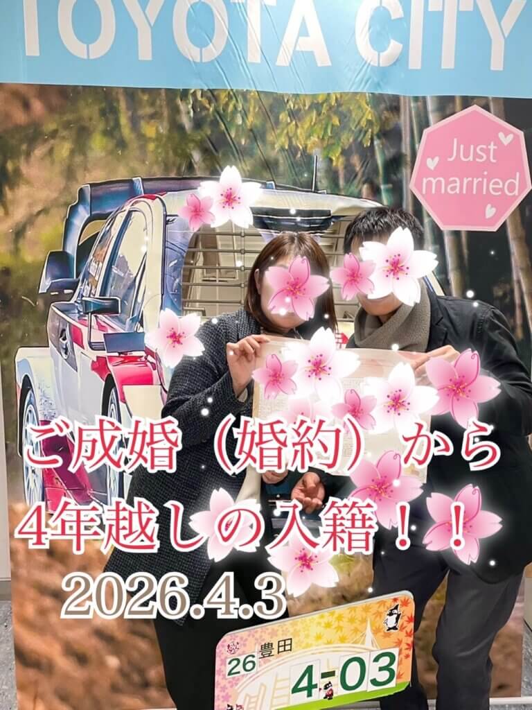 なんと、成婚(婚約)から4年越しの入籍報告がありました。