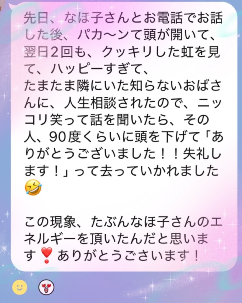 ・・・・・・・・・・・・・・・・・・先日、なほ子さんとお電話でお話した後、パカ〜ンて頭が開いて、翌日2回も、クッキリした虹を見て、ハッピーすぎて、たまたま隣にいた知らないおばさんに、人生相談されたので、ニッコリ笑って話を聞いたら、その人、...
